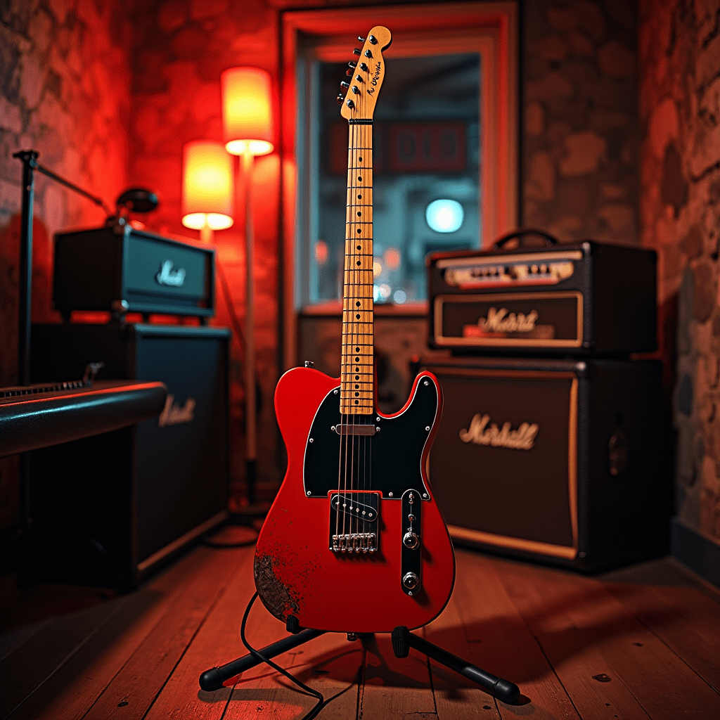 A Fender Telecaster delivering sharp, twangy tones. Perfect for rock and country.