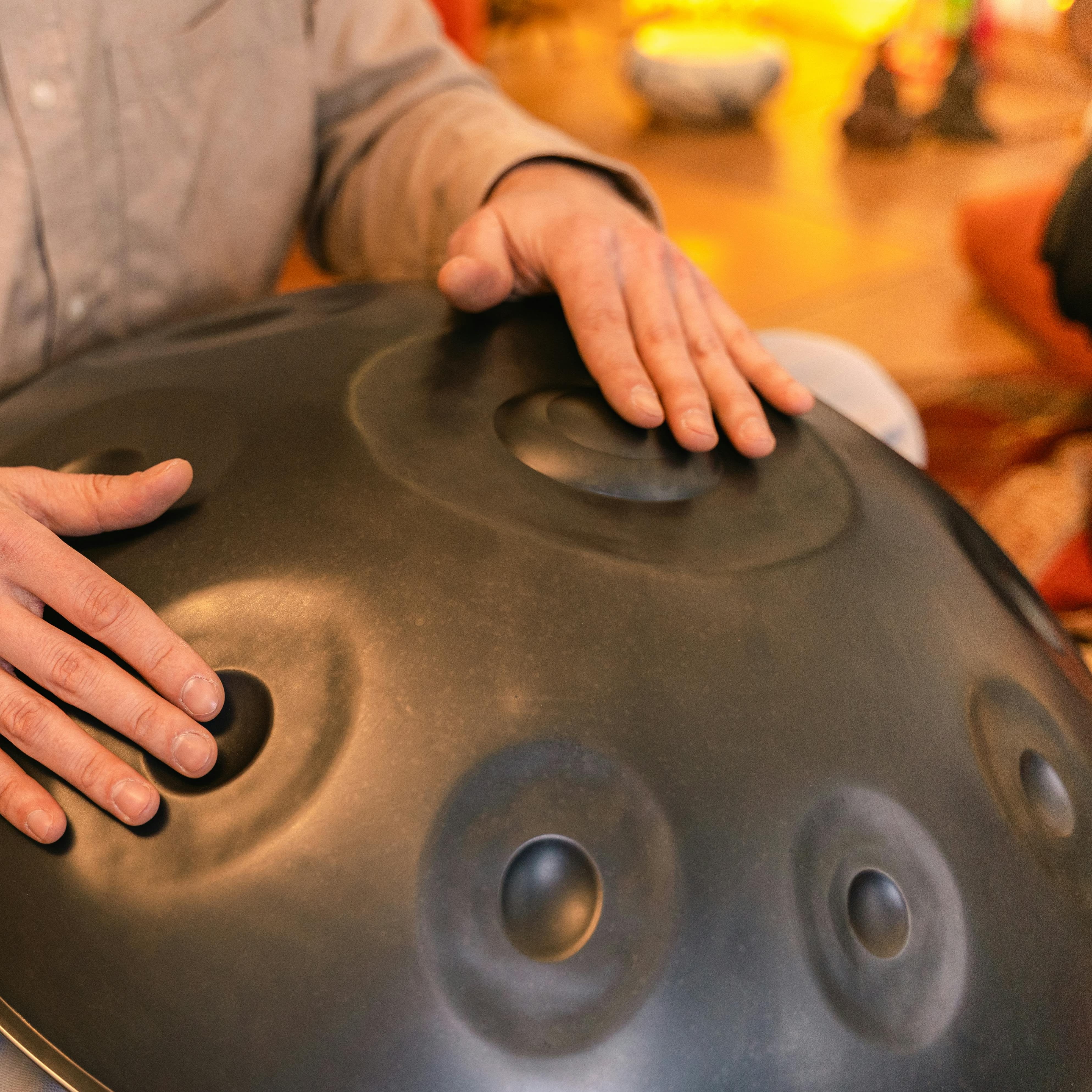 A handcrafted steeldrum with a melodious and vibrant tone, perfect for Caribbean rhythms.