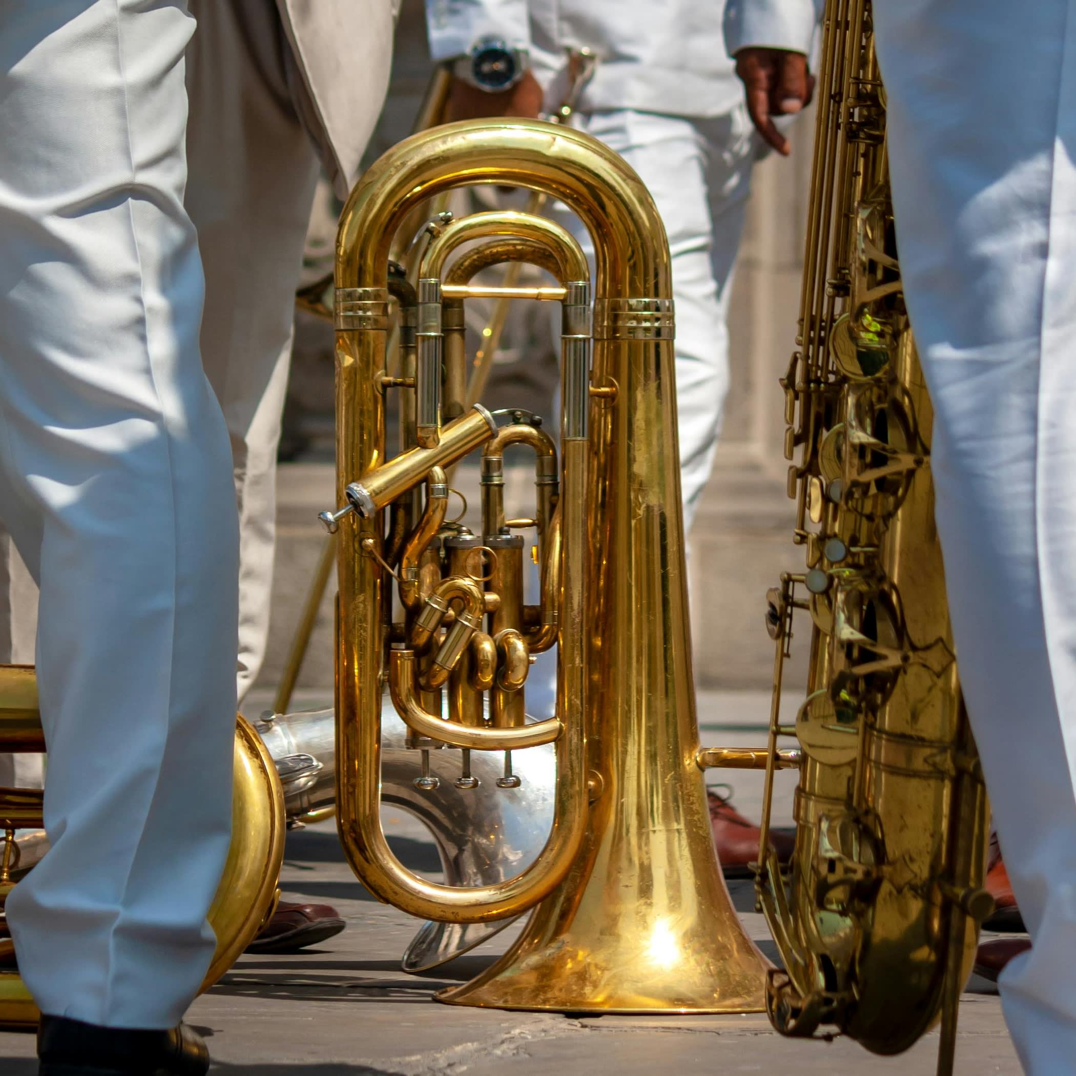 A rich-sounding vintage tuba that delivers deep and resonant notes, ideal for brass ensembles.